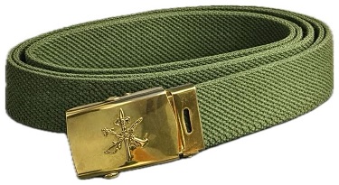 | CINTURÓN PASEO LEGION VERDE HEBILLA DORACINTURÓN PASEO LEGIÓN ESPAÑOLA DE 3,5 CM EN CINTA COLOR VERDE CON HEBILLA TIPO AMERICANA COLOR DORADA EMBLEMA LEGIÓN CON CORONA .LARGO NORMAL : 123 CM.SE PUEDE SERVIR EN VERDE EN CUALQUIER LARGO. POSIBILIDAD TAMBIÉN DE SERVIR EN NEGRO (CUALQUIER MEDIDA)